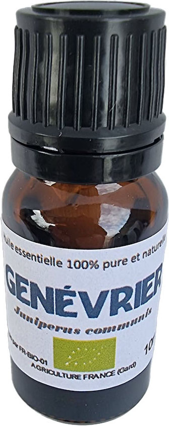 Huile essentielle de genévrier commun bio, distillée dans le Gard.