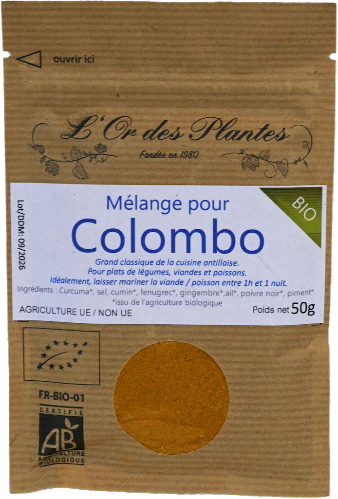 ingrédients: Curcuma*, sel, cumin*, fenugrec*, gingembre*,ail*,poivre noir*, piment*.