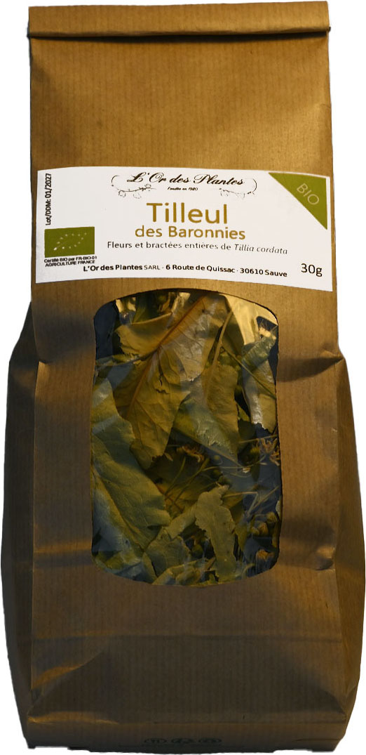 Fleurs et bractées entières de tilleul bio petit producteur (Drôme).
